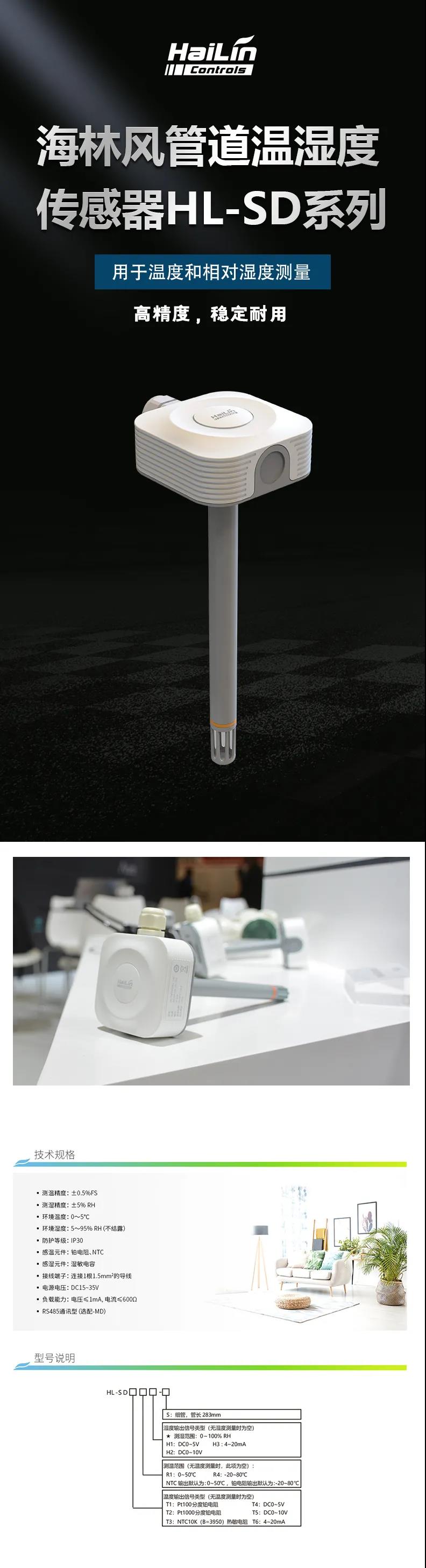 海林風管道溫濕度傳感器HL-SD廣泛應用于樓宇自動化與暖通信號采集、博物館和賓館的氣候站、大棚溫室以及醫藥行業等,主要用于風管道的溫度、濕度測量,可提供多種溫度測量范圍,以適應不同測量要求;可提供NTC、鉑電阻、電壓、電流信號輸出,適應各種控制系統的不同要求。
