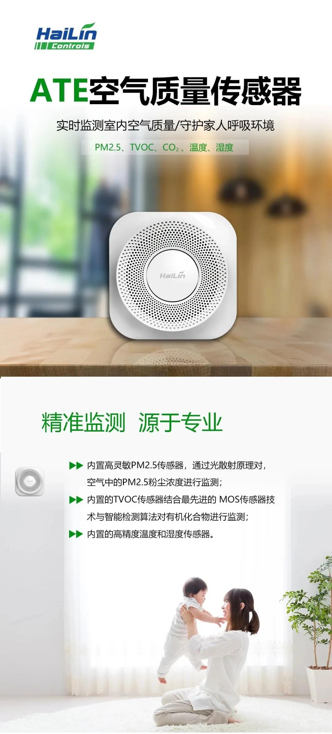 哈林ATE空氣質量傳感器,集 PM2.5、TVOC、CO? 、溫度、濕度的監測功能于一體,實時精準監測,數據一目了然。