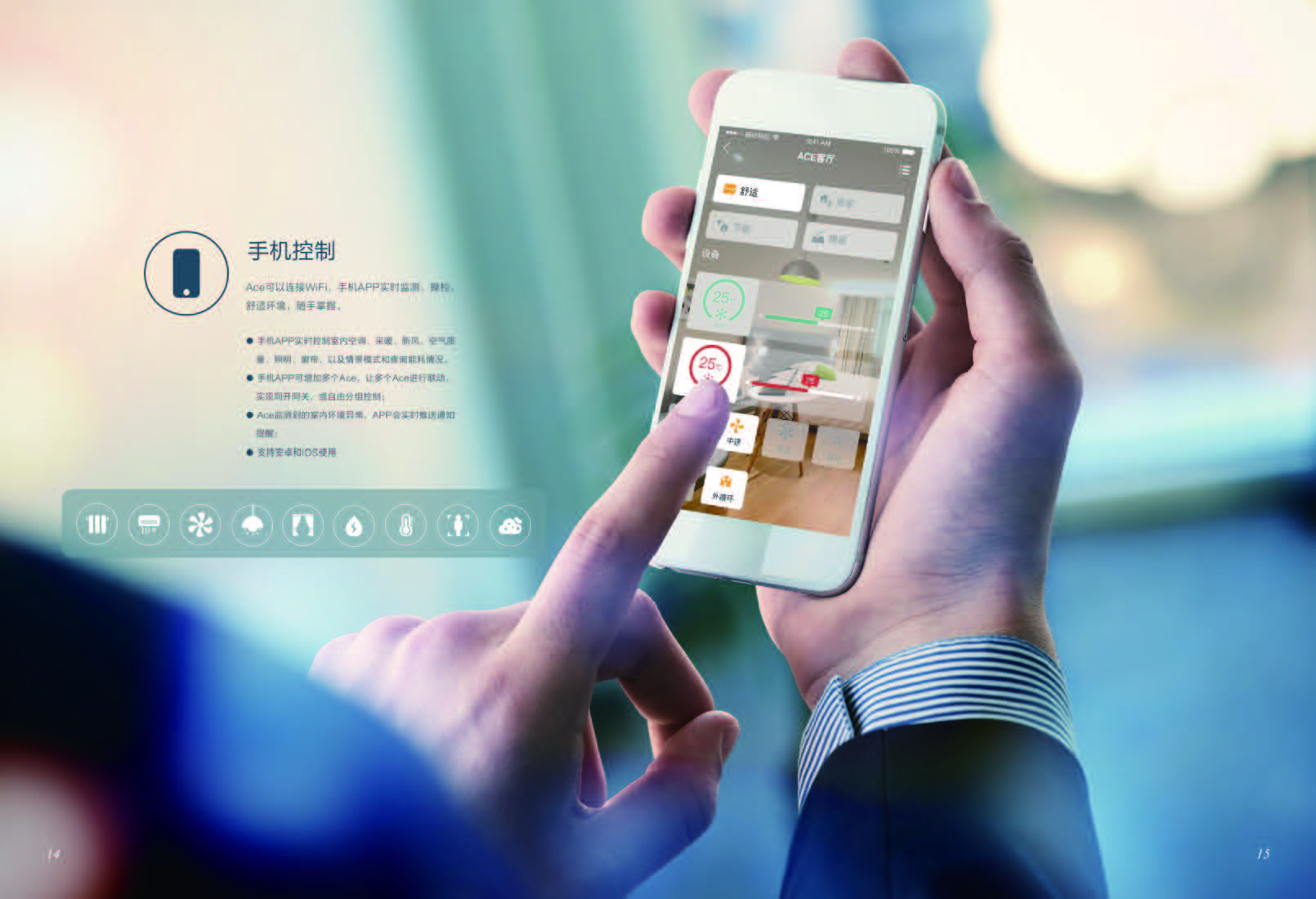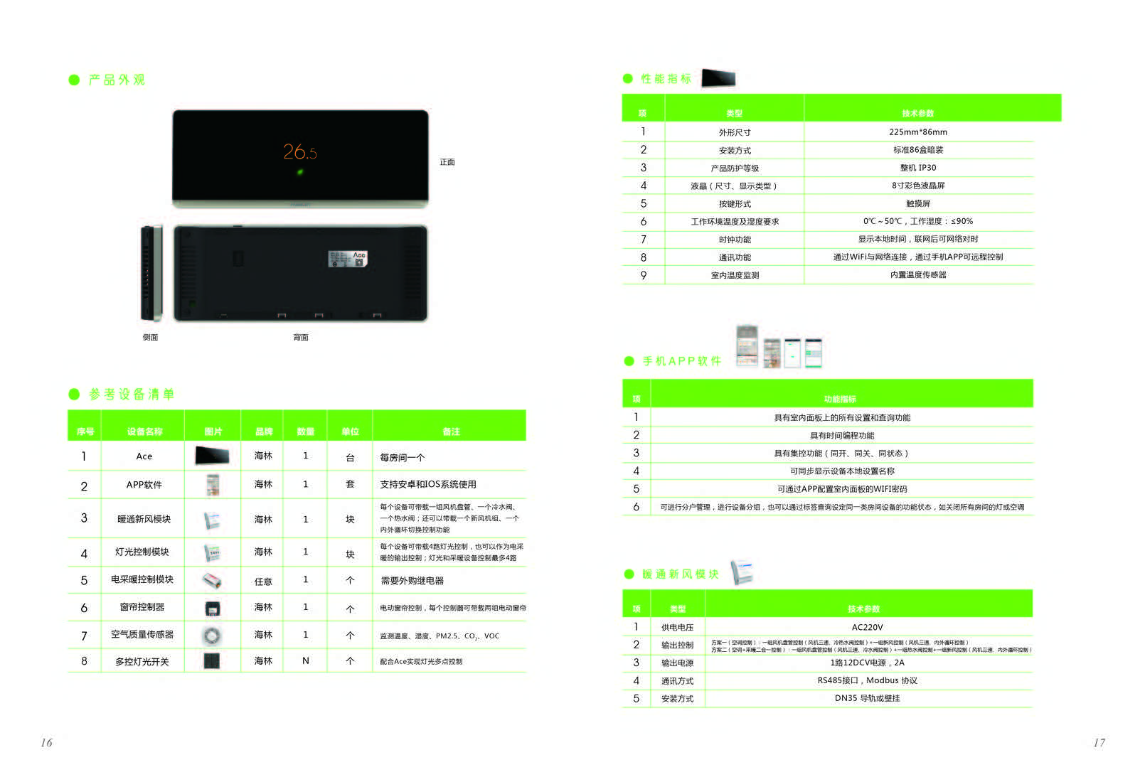 ACE將溫度控制、燈光控制、窗簾控制、新風(fēng)控制、空氣檢測集于一身