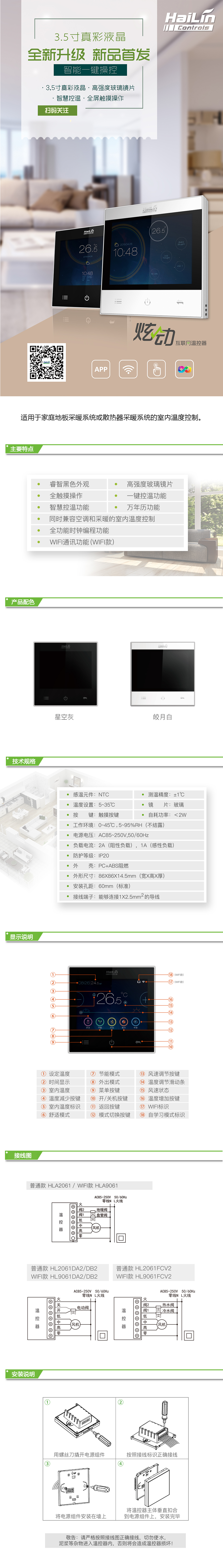 適用于中央空調風機盤管系統或風管道系統,自動調節室內溫度。炫麗3.5寸真彩液晶屏,全屏觸摸操作,星空灰、皎月白兩種顏色可選,外觀設計簡約、時尚,表達了最直觀的美。智慧控溫,一鍵操作,具有自學習功能,將智能科技融入舒適生活。