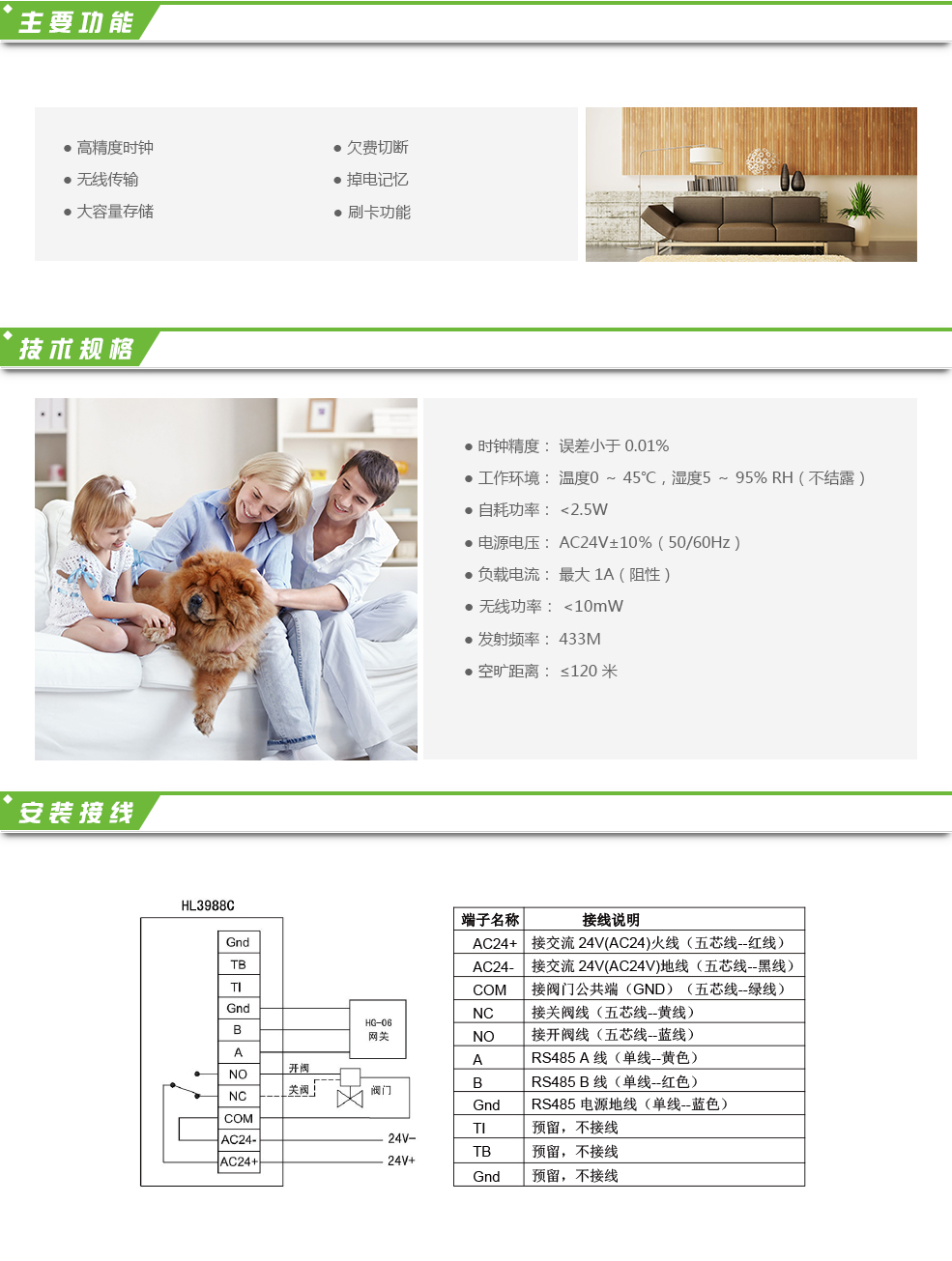 刷卡計量控制器HL3988C是應用于集中供熱采暖系統的智能控制器。對戶內采用無線通訊方式與室內溫控器進行通訊,RS485通訊方式與網關互聯。可以精確計量閥門開啟時間,對室內溫度及設定溫度等參數精確計量和存儲。現場安裝極為簡單方便。 可與無線溫控器HL3983S或無線溫控器HL3963-S2配套使用。