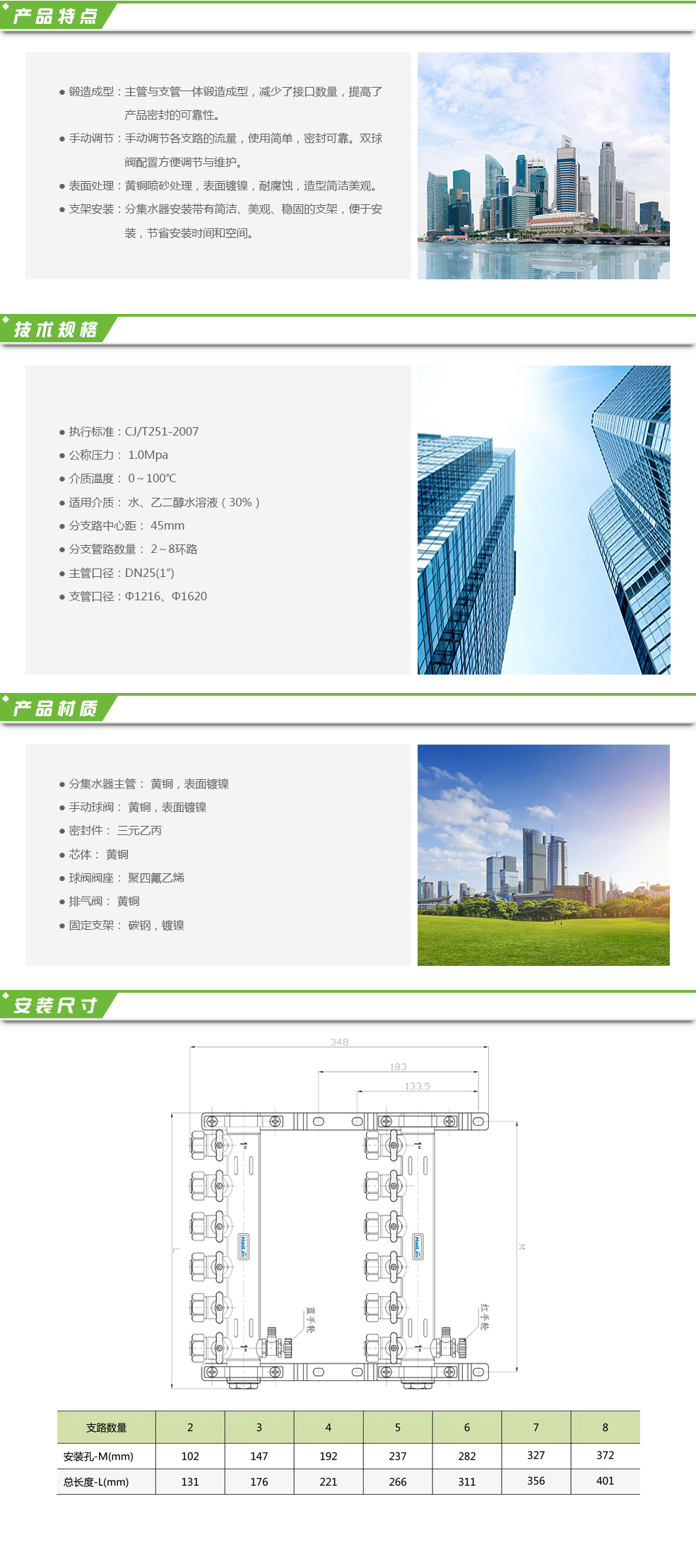 TH33系列分集水器為銅制整體型分集水器,適用于地板采暖系統,控制輻射地板采暖系統的熱能。分集水器各支路均采用雙球閥控制,可以根據管道介質流量的需要自行調節閥門的開啟角度,如果需要升高室溫,則閥門開啟角度增大;降低室溫,則閥門開啟角度減少;房間無人員停留時,則可以關閉閥門以達到節能的目的。本品優點在于結構簡單,造型美觀,占用空間尺寸小,價格便宜;缺點是 ...